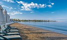 Sandstrand: flach abfallend, gehört zur Anlage, von der Anlage getrennt durch Promenade, Sonnenschirme, Liegen, Strandservice (ca. 1.4.-7.11.), ca. 1.4.-31.10.