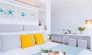 31-35 qm, Juniorsuite, Meerblick, Bettwäsche, Handtücher und Matratzen aus 100% Bio-Baumwolle, separates Schlafzimmer, kombinierter Wohn-/Schlafraum, 2 Einzelbetten, Doppelbett, Dusche oder Badewanne, WC, Bademantel, Badeslipper, Haartrockner, Fliesen, Klimaanlage, Heizung, Minibar, Safe, TV (Sat-TV), WLAN, Wasserkocher, Espressomaschine, Kaffee/Tee, Balkon
