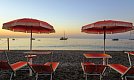 Liegestühle, Sonnenschirme und Strandtuch gegen Gebühr