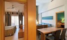 51-60 qm, Appartement, Superior, renoviert (2019), separates Schlafzimmer, Twinbett, Sofabett, Dusche, WC, Haartrockner, Kosmetikspiegel, Fliesen, Klimaanlage, Ventilator, Mini-Kühlschrank, Safe, 2 TVs (Sat-TV), Kochnische, Essecke, Gas-/E-Herd, Gefrierfach, Wasserkocher, Mikrowelle, Kaffeemaschine, Toaster, Balkon oder Terrasse (möbliert), Bettwäschewechsel (2 x wöchentlich), Handtuchwechsel (3 x wöchentlich), Zwischenreinigung (kostenfrei, 5 x wöchentlich)