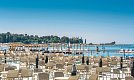 Kiesstrand: Sonnenschirme (kostenpflichtig), Liegen (kostenpflichtig)