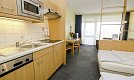 26-30 qm, Studio, kombinierter Wohn-/Schlafraum, Sitzecke, Doppelbett, Doppelbettcouch, Dusche, Haartrockner, TV, Kochnische, Essecke, Gas-/E-Herd, Kaffeemaschine, Kühlschrank, Balkon, bezogene Betten bei Anreise, Bettwäsche kostenfrei, Bettwäschewechsel kostenpflichtig, Handtücher kostenfrei, Handtuchwechsel kostenpflichtig, Energiekosten (kostenfrei), Endreinigung (kostenfrei)