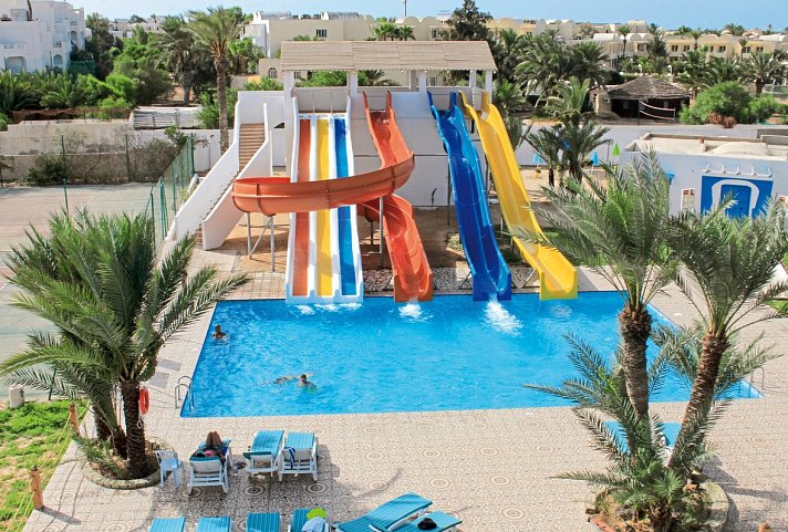 1 Pool: Süßwasser, Wasserrutschen , Sonnenschirme, Liegen, Badetuch (gegen Kaution)