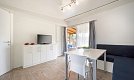 31-35 qm, Mobilhome, 2 separate Schlafzimmer, kombinierter Wohn-/Schlafraum, 2 Einzelbetten, Doppelbett, Doppelbettcouch, 2 Bäder, Dusche, WC, Klimaanlage, TV, Kochnische, Essecke, Terrasse (möbliert, überdacht), 1 Parkplatz pro Wohneinheit, Bettwäsche kostenfrei, Bettwäschewechsel (1 x wöchentlich), Handtücher kostenfrei, Handtuchwechsel (2 x wöchentlich), Energiekosten (kostenfrei), Endreinigung (bereits im Gesamtpreis inkludiert)