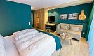 31-35 qm, Doppel, Premium, Landseite, renoviert, Nichtraucher, Sitzecke, Boxspringbett, bodengleiche Dusche, Bademantel, Haartrockner, Kosmetikspiegel, Safe, TV (Smart-TV), Kaffeekapselmaschine, Balkon
