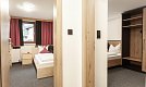 Die Familienzimmer (ca. 35 m², min./max. 2 Vollzahler + 2 Kinder) bestehen aus 2 Doppelzimmern, gemeinsamem Badezimmer mit Dusche sowie Balkon.