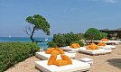 Sandstrand: Sonnenschirme (kostenpflichtig), Liegen (kostenpflichtig), ca. Juni-September