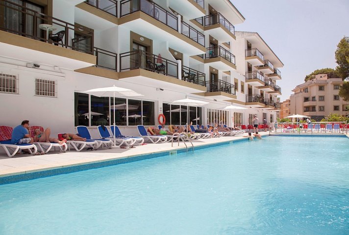 Eine üppige Vegetation sorgt für schattige Plätze am Pool mit gemütlicher Sonnenterrasse. Kräftige Farben und modernes Design vermitteln ein unbeschwertes Urlaubsfeeling in dem zentral gelegenen Hotel.