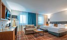 Die Doppelzimmer Economy (2 Vollzahler) sind bei einer Größe von ca. 18 m² mit Dusche, Föhn, Leihbademantel, -saunatüchern und -slippern, TV, Minibar, Kaffeemaschine sowie Safe ausgestattet. Die Doppelzimmer Standard (min. 2 /max. 2 Vollzahler + 3. Person*) und Einzelzimmer (min. 1/max. 1 Vollzahler + 1 Kind*) bieten eine Größe von ca. 28 m² und verfügen zusätzlich über einen Schlafsessel oder -sofa. Die Doppelzimmer Superior (min. 2/max. 2 Vollzahler + 2 Kinder bzw. 3. Person*) sind ca. 30 m² groß und verfügen zusätzlich über ein ausklappbares Schlafsofa (1,60 m breit).