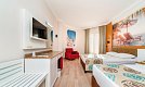 26-30 qm, Familien, Großraum, Hauptgebäude, Landblick oder Poolblick, renoviert, 1 Bad, Dusche, 1 WC, Haartrockner, Klimaanlage, individuell regulierbar, Minibar, Auffüllung regelmäßig, Safe (kostenpflichtig), 1 TV (Sat-TV), Balkon