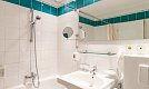 16-20 qm, Doppel, 1 französisches Bett, an der Wand, Einstieg nur von einer Seite, Dusche oder Badewanne, Bademantel, Haartrockner, TV, Balkon
