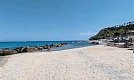 Direkt am teils mit Felsen dursetzten Sand-/Kiesstrand