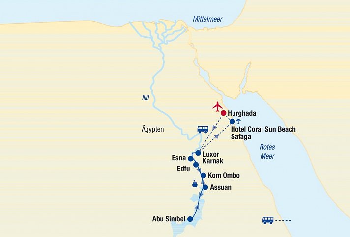 - 15-tägige Reise inkl. Flug in der Economy-Class nach Hurghada und zurück (Umsteigeverbindung möglich)
