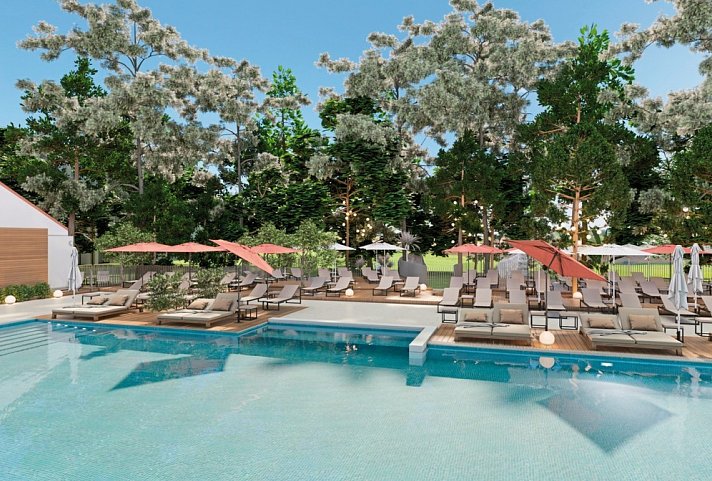 Am Meer, umgeben von Pinien, finden Gäste die perfekte Mischung aus Aktivurlaub und Entspannung: Hallenbad und Pools, Wellnessangebote, Fitnesstraining, Yoga & Pilates im Hotel, dazu Tennis, Beachvolleyball etc. in der Nähe.