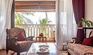 Doppel, Bettwäsche, Handtücher und Matratzen aus 100% Bio-Baumwolle, Sitzecke, Badewanne, WC, Haartrockner, Klimaanlage, Safe, TV (Sat-TV), WLAN, Wasserkocher, Kaffee/Tee, Kühlschrank, Balkon