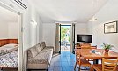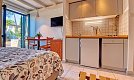 abweichende Zimmerkategorie: 4 Sterne, 21-25 qm, Studio, Komfort, Gartenseite, Bettwäsche, Handtücher und Matratzen aus 100% Bio-Baumwolle, kombinierter Wohn-/Schlafraum, Sofabett, Dusche, Haartrockner, Klimaanlage, Safe, TV, Kochnische, Essecke, Mikrowelle, Kaffeemaschine, Terrasse (möbliert), Bettwäschewechsel (1 x wöchentlich), Handtuchwechsel (1 x wöchentlich), Endreinigung selbst oder zahlbar vor Ort (ca. 50 EUR/Aufenthalt), (ca. 50 CHF/Aufenthalt)