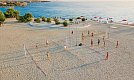 Sand-/Kieselstrand: ca. 1.500 m lang, Sonnenschirme (kostenpflichtig), Liegen (kostenpflichtig), Umkleidekabinen, sanitäre Anlage (Dusche)