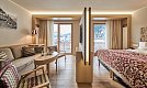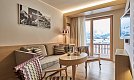36-40 qm, Juniorsuite, Bergblick, kombinierter Wohn-/Schlafraum, Sitzecke, Couch, Dusche, Badewanne, Bidet, Haartrockner, Parkett, Minibar, TV, WLAN, Balkon, Kopfkissen-Menü