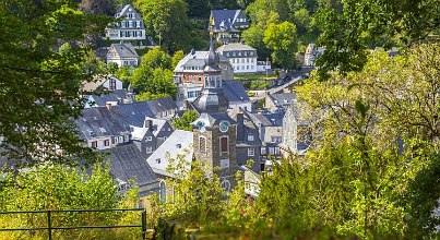 Mitten durch die Ortschaft schlängelt sich die Rur gemächlich vorbei an liebevoll restaurierten Fachwerkhäusern, die an jeder Ecke malerische Blickwinkel auf romantische Gassen eröffnen. Neben der Burg Monschau erwarten die Gäste vor Ort zudem kulinarische Spezialitäten wie Pralinen, Printen oder Senf und mit dem Eifelsteig ein erlebnisreicher Wanderweg.