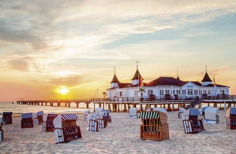 Den feinen Sandstrand, das ruhige Hinterland und die sonnige Lage wussten schon Kaiser und Adel zu schätzen. Bansin, Heringsdorf und Ahlbeck – in dieser Reihenfolge liegen die sogenannten Kaiserbäder am östlichen Ende des deutschen Teils der Insel Usedom direkt an der See. Hier pflegte sich Ende des 19. Jahrhunderts die kaiserliche Familie öfter aufzuhalten und in deren Gefolge dann auch der Adel. Dieser baute sich für seine Sommerfrische prachtvolle Villen – und auch die längste Seebrücke Europas. Eine Strandpromenade verbindet heute die drei Bäder. Hier findet jeden Juni auch der „Grand Schlemm“ statt, eine kulinarische Strandwanderung, bei der die Gäste zehn Genussstationen ansteuern, für zehn Gänge von den besten Köchen der Insel Usedom.