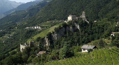 Über dem Etschtal und dem Vinschgau liegt das Schloss Tirol auf etwa 650 Metern Höhe. Diese Residenzburg der Grafen von Tirol gab dem umliegenden Land seinen Namen. Bereits seit dem Mittelalter war der Burghügel bewohnt, was zahlreiche archäologische Funde sowie Gräber bezeugen. Die Burg durchlief in neun Jahrhunderten verschiedene Bauphasen, was dieser ihr heutiges Aussehen verlieh. Mittlerweile dienen die vielen Gebäude, die zum Schlosskomplex gehören, als Museum für Kultur- und Landesgeschichte. Bei einer Besichtigung können Sie Rittersäle, Kapellen und Festsäle bestaunen. Ein besonderes Highlight auf dem Burghügel ist die bekannte Greifvogel-Flugschau im Pflegezentrum für Vogelfauna. Greife und Eulen erleben Sie bei den Flugvorführungen hautnah!