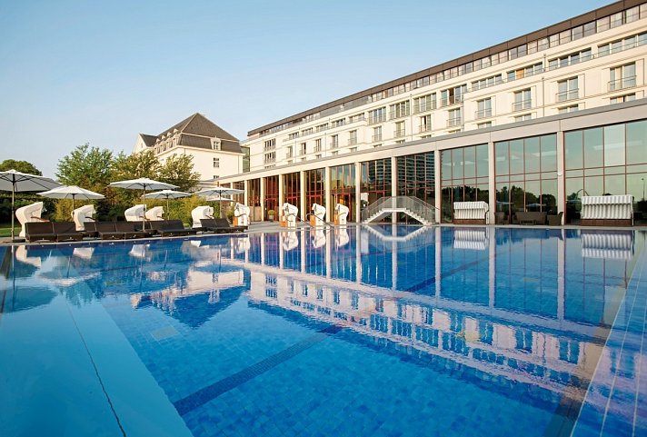 Das teils denkmalgeschützte Kurhaushotel A-ROSA Travemünde liegt nur ca. fünf Gehminuten vom Zentrum und nur ca. 300 Meter vom Strand entfernt. Das Resort verfügt über zwei herausragende Restaurants, einen Degustationsraum, eine Marktplatzbar und einen Kinder- und Jugendclub ROSINIS für Kinder von 3 bis 15 Jahre. Ein Besuch des 4.500 qm großen Wellnessbereich SPA-ROSA (Kinder unter 16 Jahre ist der Zutritt nur in Begleitung der Eltern gestattet) berührt nicht nur den Körper, sondern auch den Geist und beschert Ihnen eine wohltuende Auszeit. Die Marktplatzbar ist der zentrale Treffpunkt des Hotels und bietet Cocktails, schöne Weine, dazu köstliche Snacks oder Kuchen. Die Vitalbar verwöhnt mit frischen Säften und Snacks. Parkplatz und Parkhaus (je EUR 20 pro Nacht/PKW). Der Bahnhof Lübeck-Travemünde Strand ist ca. 400 m vom Resort entfernt. Ein Shuttleservice ist auf Anfrage und nach Verfügbarkeit möglich. Der Flughafen Hamburg-Fuhlsbüttel ist ca. 90 km entfernt.
