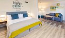 26-30 qm, Familien, behindertengerecht (Zimmer auf Anfrage buchbar), kombinierter Wohn-/Schlafraum, Sitzecke, Twinbett, Sofabett, Regendusche, WC, Haartrockner, Kosmetikspiegel, Fliesen, Klimaanlage, Heizung, Minibar kostenpflichtig, Safe (kostenpflichtig), TV (Sat-TV), Wasserkocher, Terrasse (möbliert)