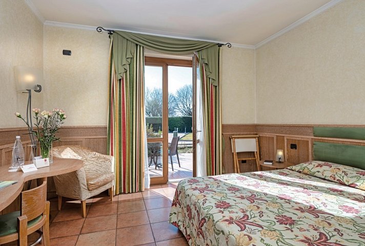 Einst ein Bauernhof, heute ein komfortables Hotel, umgeben vom 18-Loch-Golfplatz. In wenigen Minuten erreichen Sie bei einem entspannten Spaziergang den Gardasee. Golfen, Laufen, Rad fahren, Schwimmen: aktiv entspannen!