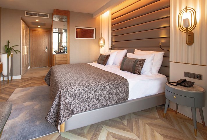 31-35 qm, Doppel, Meerblick, Bettwäsche, Handtücher und Matratzen aus 100% Bio-Baumwolle, Dusche, WC, Haartrockner, Laminatboden, Klimaanlage, Minibar, Auffüllung täglich, Softdrinks, Mineralwasser, Bier, Wasser, Safe, TV (Sat-TV), Wasserkocher, Kaffee/Tee, Balkon