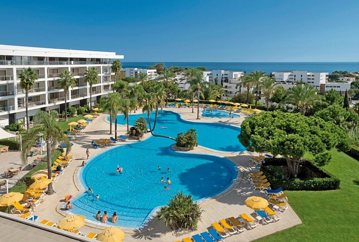 Algarve-Glück am Atlantik: Oberhalb des Meeres liegen die geräumigen Apartments, perfekt für Paare und Familien. Großen Badespaß verheißen 4 Swimmingpools, das Hallenbad und der Wasserpark für Kinder.