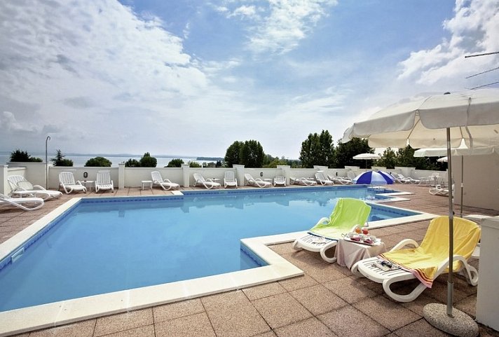1 Pool: ca. 1.4.-18.10., 108 qm, Sonnenschirme, Liegen