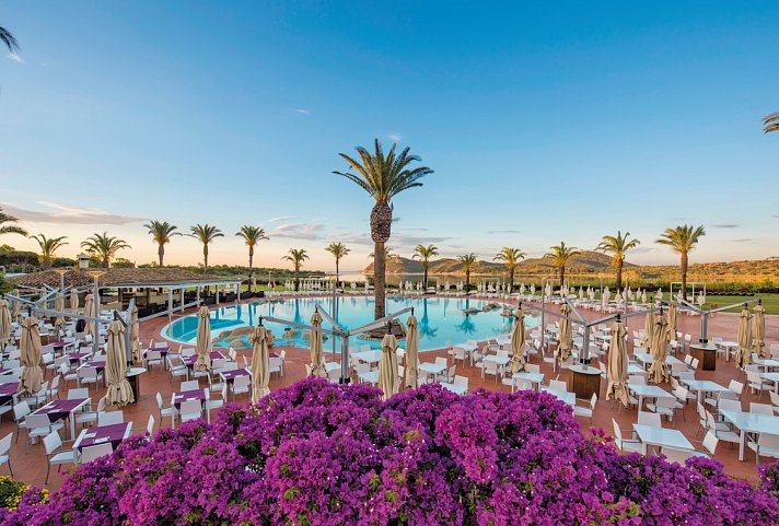 Das elegante Luxushotel umgibt ein riesiger Garten, der an eine zauberhafte Lagune grenzt. Die 500 Meter bis zum Strand legen Sie mit einer Minibahn zurück. Testen Sie die segensreichen Wirkungen von Meerwasser auch mal im großen Thalasso-Zentrum des Hauses!