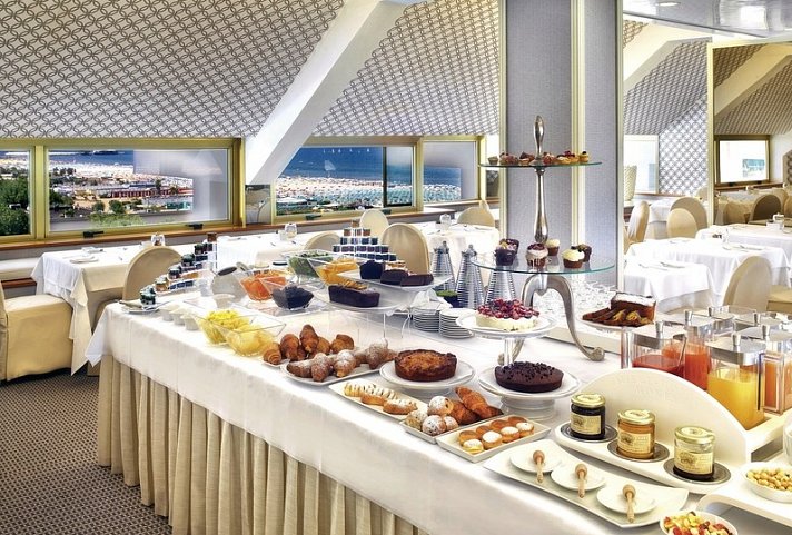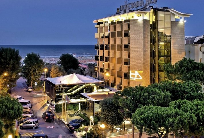 An der sonnenverwöhnten Adriaküste liegt der einstige Fischerort, den bereits Etrusker, Griechen und Gallier für sich entdeckten und der sich im 19. Jahrhundert zu einem beliebten Seebad entwickelte. Heute gleicht ein Spaziergang durch den quirligen Küstenort an der blauen Adria einer Wanderung durch mehrere Epochen: Ihre Wege durch die malerischen Gassen führen Sie an römischen Monumenten, mittelalterlichen Kirchen und baulichen Zeugnissen seiner Kurgeschichte wie dem klassizistischen Prachtbau des Grand Hotels vorbei. Kleine Geschäfte und Boutiquen, Eiscafés, urige Trattorias und Restaurants mit Außenterrassen laden im Zentrum zum Bummel. Die kilometerlange Küstenlinie säumen sandige Strände, an denen Sie Strandbars zu Partys und Freiluft-Whirlspools zum Relaxen einladen. Im strandnahen Thermalbad Rimini Terme können Sie Badekuren genießen, auf der lebhaften Uferpromenade finden abends Unterhaltungsprogramme und Showveranstaltungen statt. Aktivurlauber powern sich während ihres Urlaubs in Rimini bei Wassersportaktivitäten und Beachvolleyball aus oder unternehmen Rad- und Wandertouren durch mediterrane Landschaften. Eingerahmt von Obst- und Weinbergen liegt beispielsweise Italiens größtes Flugzeugmuseum auf einem Hügel: Wenige Kilometer südwestlich von Rimini erwartet der Parco Tematico dell'Aviazione Flugzeugfans und Technikbegeisterte aus aller Welt mit über 50 Luftfahrzeugen sowie zahlreichen weiteren Exponaten.