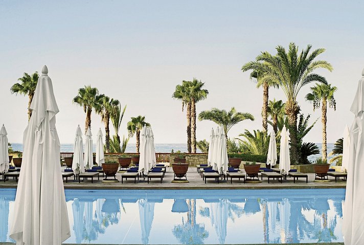 Das Luxus-Domizil hat eine herausragende Lage: Sie sind nur wenige Gehminuten vom Strand entfernt und haben einen wunderschönen Blick auf den Hafen von Paphos – Urlaubsfeeling pur! Das kommt auch durch die Poolanlage auf, die sehr schön und top-gepflegt ist.