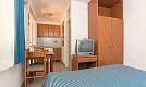 16-20 qm, Studio, kombinierter Wohn-/Schlafraum, Sofabett, Badewanne, WC, TV (Sat-TV), Kochnische, Essecke, Terrasse, Bettwäschewechsel (1 x wöchentlich), Handtuchwechsel (2 x wöchentlich)