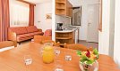 36-40 qm, Appartement, separates Schlafzimmer, kombinierter Wohn-/Schlafraum, Twinbett, Sofabett, Dusche oder Badewanne, WC, TV (Sat-TV), Kochnische, Essecke, Balkon oder Terrasse, Bettwäschewechsel (1 x wöchentlich), Handtuchwechsel (2 x wöchentlich)