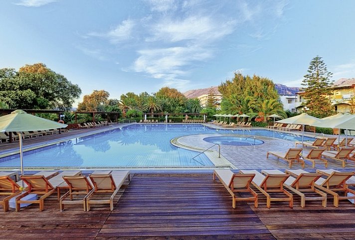 All Inclusive: Frühstück (Buffet), Langschläferfrühstück bis 10:30 Uhr, kontinentales Frühstück, American Breakfast, English Breakfast, Mittagessen (Buffet), Abendessen (Buffet), Abendessen im à-la-carte-Restaurant (1x pro Aufenthalt in allen Restaurants), Getränke kostenfrei (Softdrinks, Mineralwasser, Kaffee/Tee, Tischwein, Bier, Säfte, Hauswein, Cocktails, Longdrinks, lokale Spirituosen, 10-0 Uhr), Kaffee/Tee und Gebäck (16-17 Uhr), Eis (10-18 Uhr), Internationale Spirituosen kostenfrei (laut Getränkekarte) (10-0 Uhr), Tennis (begrenzte Dauer), Fahrradverleih (1x täglich, begrenzte Dauer)