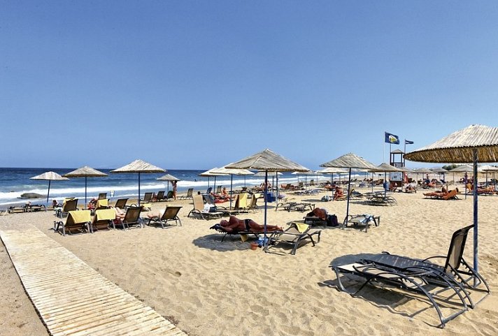 Am langen Strand von Amoudara, umgeben vom Almyros-Nationalpark – die Lage ist perfekt für Spaziergänge, zum Wandern und Joggen. Und wenn Sie Stadtluft schnuppern wollen: Heraklion ist mit dem Bus in nur zehn Minuten erreichbar.