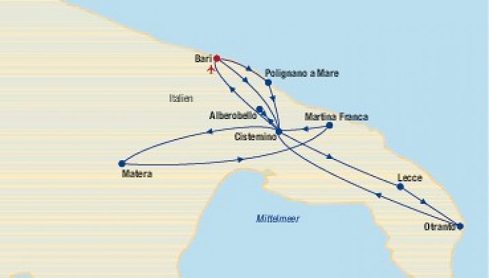 Italien / Bari - Lecce - Otranto - Matera - Martina Franca - Alberobello - Cisternino - Polignano a Mare - Polignano a Mare