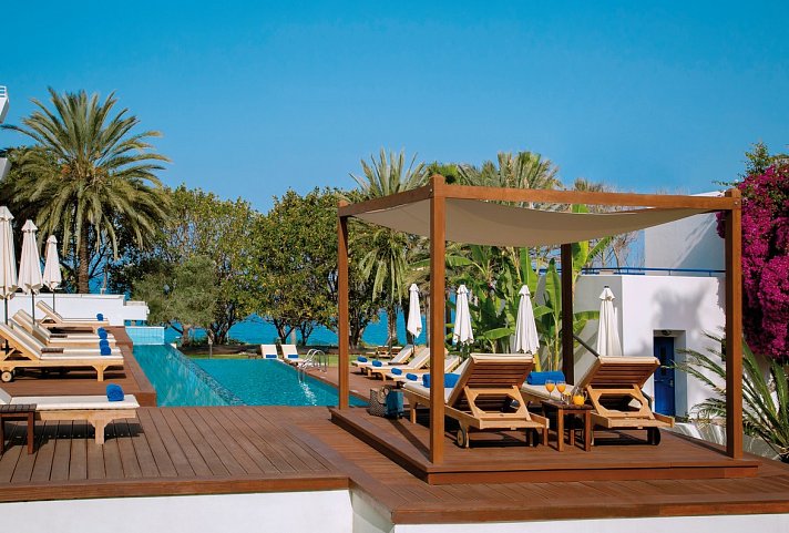 Luxus ohne Hochmut, Qualität ohne Eitelkeit – Urlaub mit Stil! Nach dem Umbau zeigt das Hotel sein neues Gesicht, edel und schön. Hochgelobt ist das Asphodel Spa, großräumig und luftig. Man empfängt Sie mit einem Orangenblütentrank: Auf Ihr Wohl!