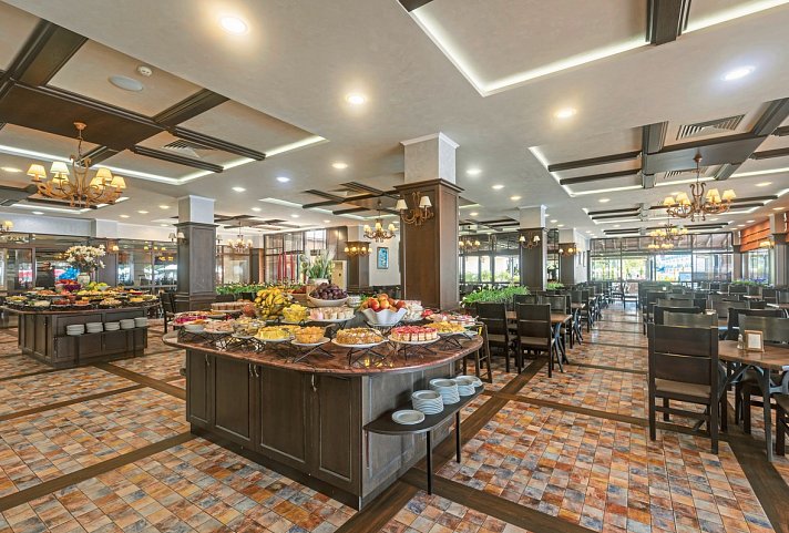 All Inclusive: Frühstück (Buffet), Mittagessen (Buffet), Abendessen (Buffet), Getränke kostenfrei (Softdrinks, Mineralwasser, Kaffee/Tee, Tischwein, Bier, lokale Spirituosen, 11-23 Uhr), Snacks (11-17 Uhr), Eis