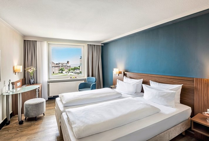 Cuxhaven liegt direkt an der Elbmündung und bietet großen und kleinen Gästen beste Bedingungen für einen unvergesslichen Aufenthalt. Ganz gleich, ob Sie in dem charmanten Nordseeheilbad entspannte Wohlfühl-Ferien, ein verlängertes Wochenende mit der ganzen Familie oder einen aufregenden Aktivurlaub verbringen möchten: Die Palette der Freizeitmöglichkeiten ist bunt und abwechslungsreich. Außerdem ist die Perle der Nordsee ganzjährig Veranstaltungsort farbenfroher Feste und Feiern – besuchen Sie die Hafentage am Alten Fischereihafen, genießen Sie Kulinarik und Musik während des Mittelalterspektakels am Fort Kugelbake, schwingen Sie das Tanzbein auf dem Deichbrand Rockfestival am Meer oder freuen Sie sich auf das stimmungsvolle Shantychorfestival. Nach einem erlebnisreichen Tag sollten Sie sich in Ihrem Urlaub in Cuxhaven in einem stilvollen Restaurant kulinarisch verwöhnen lassen. Die regionale Küche ist ebenso vielfältig wie das Wetter an der Nordsee: Neben fangfrischen Krabben, Seeteufel, Kabeljau und würziger Makrele stehen hier Labskaus, Fliederbeersuppe mit Klüten und Scholle Finkenwerder Art auf der Speisekarte. Was wäre ein Nordseeurlaub ohne Wellenrauschen und Badevergnügen? Die weiten, feinen Sandstrände bieten Sonnenhungrigen, Sandburgenerbauern und Wassersportbegeisterten facettenreiche Möglichkeiten. Ein Urlaub in Cuxhaven ist für Groß und Klein ein tolles Erlebnis.