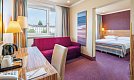 21-25 qm, Doppel, Komfort, optisch getrennter Wohn-/Schlafraum, Sitzecke, Schreibtisch, Couch, Dusche oder Badewanne, WC, Haartrockner, Minibar kostenpflichtig, Bügeleisen, TV, WLAN, Wasserkocher, Kaffee/Tee