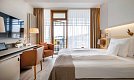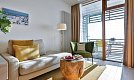 51-60 qm, Juniorsuite, separater Wohnraum, Ankleidebereich, Sitzecke, Schreibtisch, Couch, Dusche, Badewanne, Regendusche, Bidet, Bademantel, Haartrockner, Kosmetikspiegel, Minibar, Safe, TV (Flachbildschirm), iPod-Dockingstation, WLAN, Küche, Essecke, Kaffeemaschine, Balkon (möbliert)