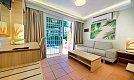41-45 qm, Bungalow, Deluxe, Nebengebäude, Gartenblick, Poolblick, optisch getrennter Wohn-/Schlafraum, Sitzecke, Schreibtisch, Twinbett, Dusche oder Badewanne, WC, Bademantel, Haartrockner, Kosmetikspiegel, Holzboden, Klimaanlage, Heizung, Mini-Kühlschrank, Safe (kostenpflichtig), TV (Sat-TV), Terrasse (möbliert), Sonnenliegen, hochwertige Badartikel, entspricht Ausschreibung auf Hotel-Homepage: SUITE WITH POOL VIEW