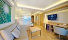 61-70 qm, Bungalow, Nebengebäude, Strandlage, an der Promenade, Meerblick, separater Wohnraum, Sitzecke, Schreibtisch, Twinbett, Dusche, WC, Bademantel (kostenpflichtig), Haartrockner, Kosmetikspiegel, Holzboden, Klimaanlage, Heizung, Mini-Kühlschrank, Safe, TV (Sat-TV), Terrasse (möbliert), Whirlpool, Sonnenliegen, hochwertige Badartikel