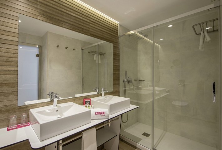 16-20 qm, Doppel, Dusche, Haartrockner, Klimaanlage, Safe (kostenpflichtig), 1 TV (Sat-TV, Flachbildschirm), WLAN, Wasserkocher, Kühlschrank