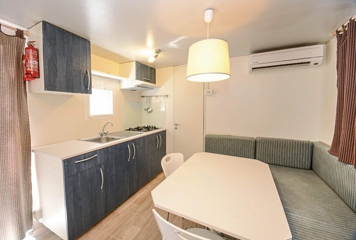 21-25 qm, Mobilhome, 2 separate Schlafzimmer, kombinierter Wohn-/Essraum, 2 Einzelbetten, Doppelbett, Sofabett, Dusche, WC, Klimaanlage, individuell regulierbar, TV, Kochnische, Essecke, Terrasse (möbliert), 1 Parkplatz pro Wohneinheit, Bettwäsche kostenfrei, Bettwäschewechsel kostenpflichtig, Handtücher können vor Ort gemietet werden (ca. 10 EUR/Person, auf Voranmeldung), (ca. 10 CHF/Person), Handtuchwechsel kostenpflichtig, Küchenwäsche muss mitgebracht werden, Energiekosten (kostenfrei), Endreinigung (bereits im Gesamtpreis inkludiert), Kaution (bar, ca. 100 EUR/Aufenthalt), (ca. 100 CHF/Aufenthalt)