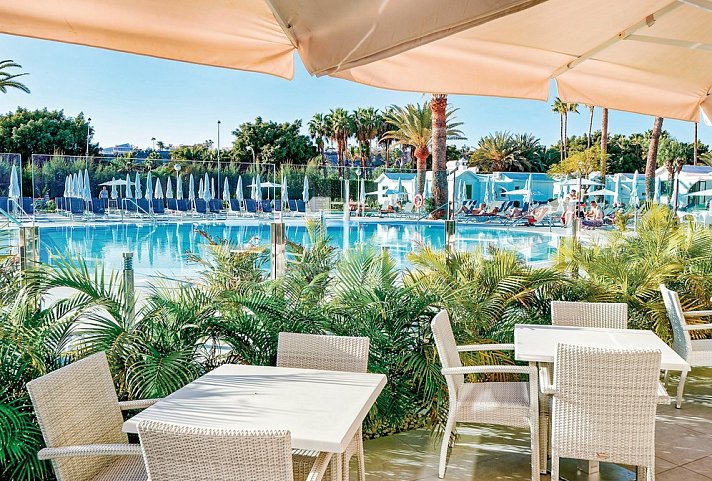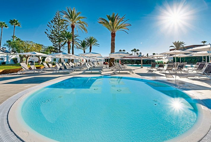Sandstrand: öffentlich, Sonnenschirme (kostenpflichtig), Liegen (kostenpflichtig), Shuttleservice zum Strand, (Maspalomas, mehrfach täglich, kostenfrei)