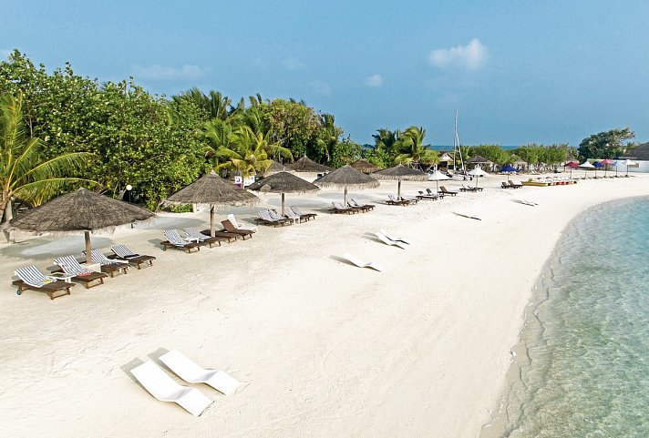 All Inclusive Plus: Frühstück (Buffet), Mittagessen (Buffet), Abendessen (Buffet), Getränke kostenfrei (Softdrinks, Kaffee/Tee, Säfte, Milchshakes, Wasser, 8-0 Uhr), Getränke kostenfrei (Bier, Hauswein, Cocktails, lokale Spirituosen, 10-0 Uhr), Snacks (10:30-11:30 Uhr und 16:30-18 Uhr), Minibar (Auffüllung täglich, Softdrinks, Bier), Weihnachtsdinner, Silvesterdinner, zusätzlich ab einem Aufenthalt von 4 Nächten: Premium-Getränkeauswahl, eine Flasche Sekt bei Ankunft, 2 Ausflüge (Angeln bei Sonnenuntergang, Schwimmen & Schnorcheln, Delfinbeobachtung oder Huraa-Ausflug), ein Abendessen bei Kerzenschein am Strand (4-Gänge-Menü), eine balinesische Spa-Behandlung (60 Minuten, nur für Erwachsene) und Aufdeck-Service mit Annehmlichkeiten